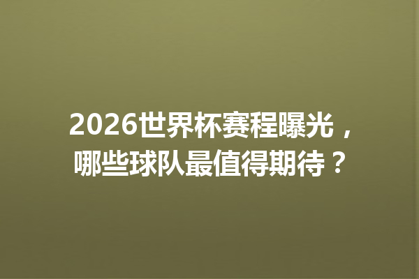 2026世界杯赛程曝光,哪些球队最值得期待? 一